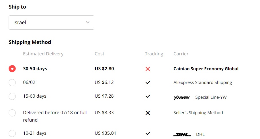 может быть доставка из Турции или продавец из Израиля.я заказал дрель и через 3 дня курьер привёз.продавец из Израиля