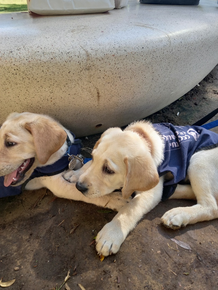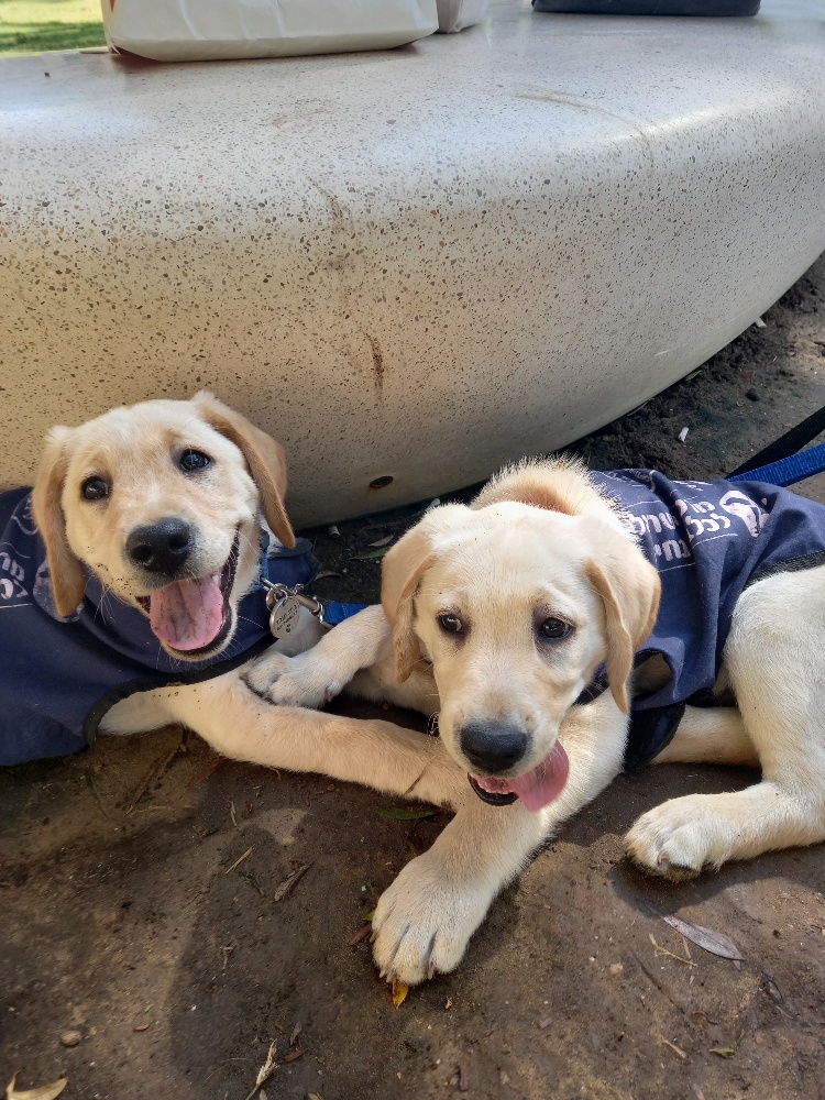 У нас в университете наверное около сотни маленьких лабрадоров которые гуляют со студентами и сидят с ними на лекциях .