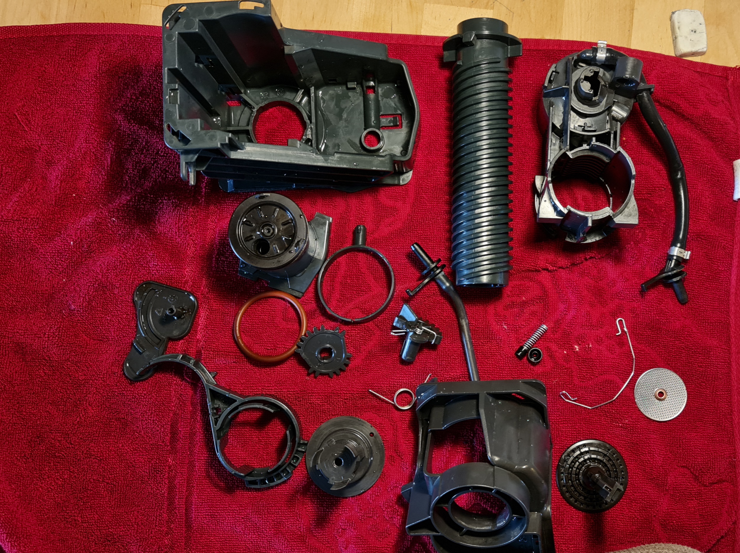 Решил почистить радикально свою кофемашину, после 4 лет работы. Разобрал полностью заварный блок. Вымыл кучу мусора, из всех трущихся узлов. Промыл все и удалил масла от кофе.