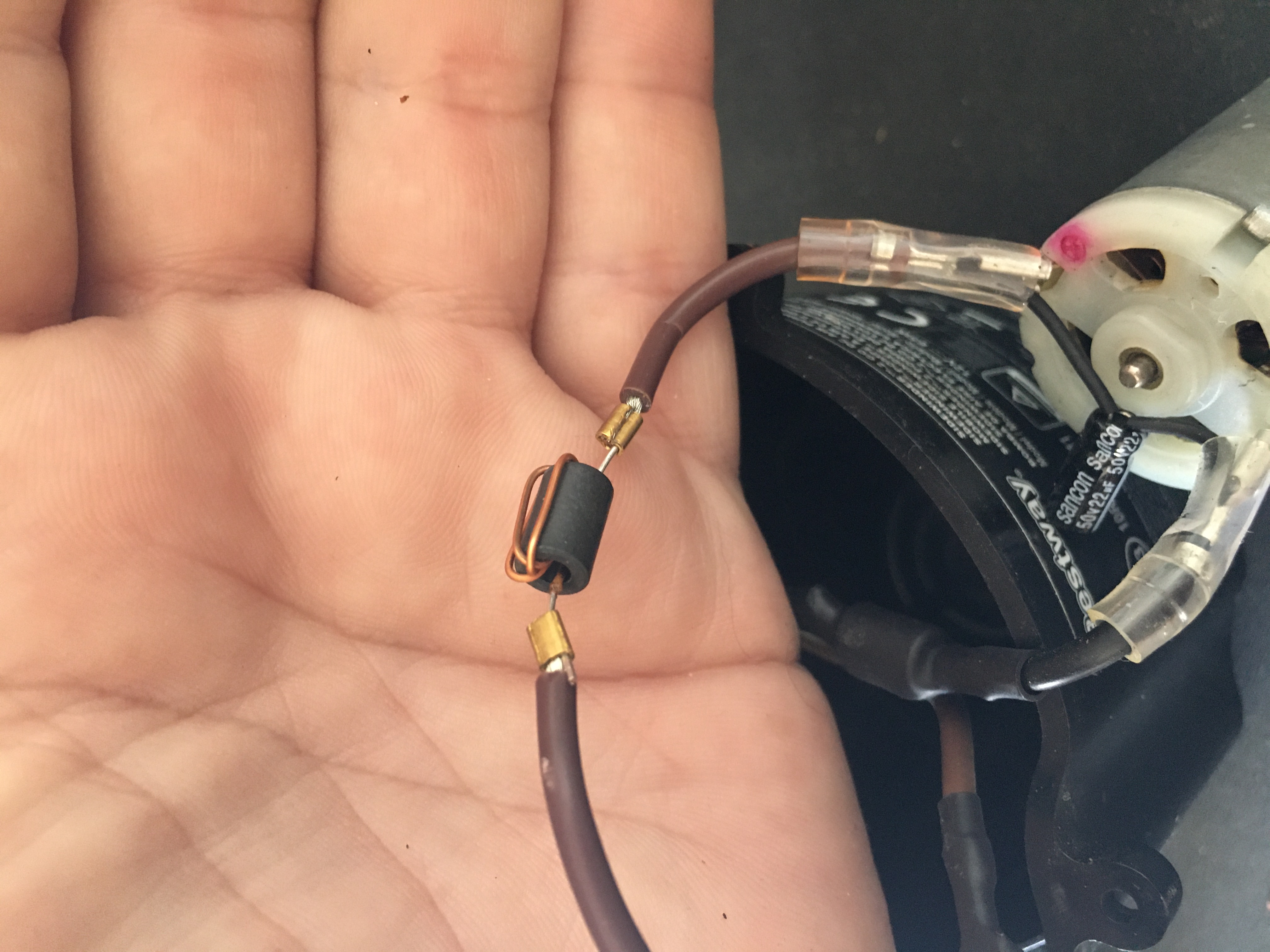 собран LC- фильтр, для подавления коммутационных помех коллекторного двигателя.
