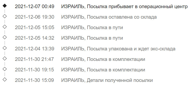 2006Michael писал(а): 12.12.2021, 20:34 Закажите что-нибудь из израильского магазина с доставкой и получите список из максимум трёх строчек: вышел, в дороге и прибыл