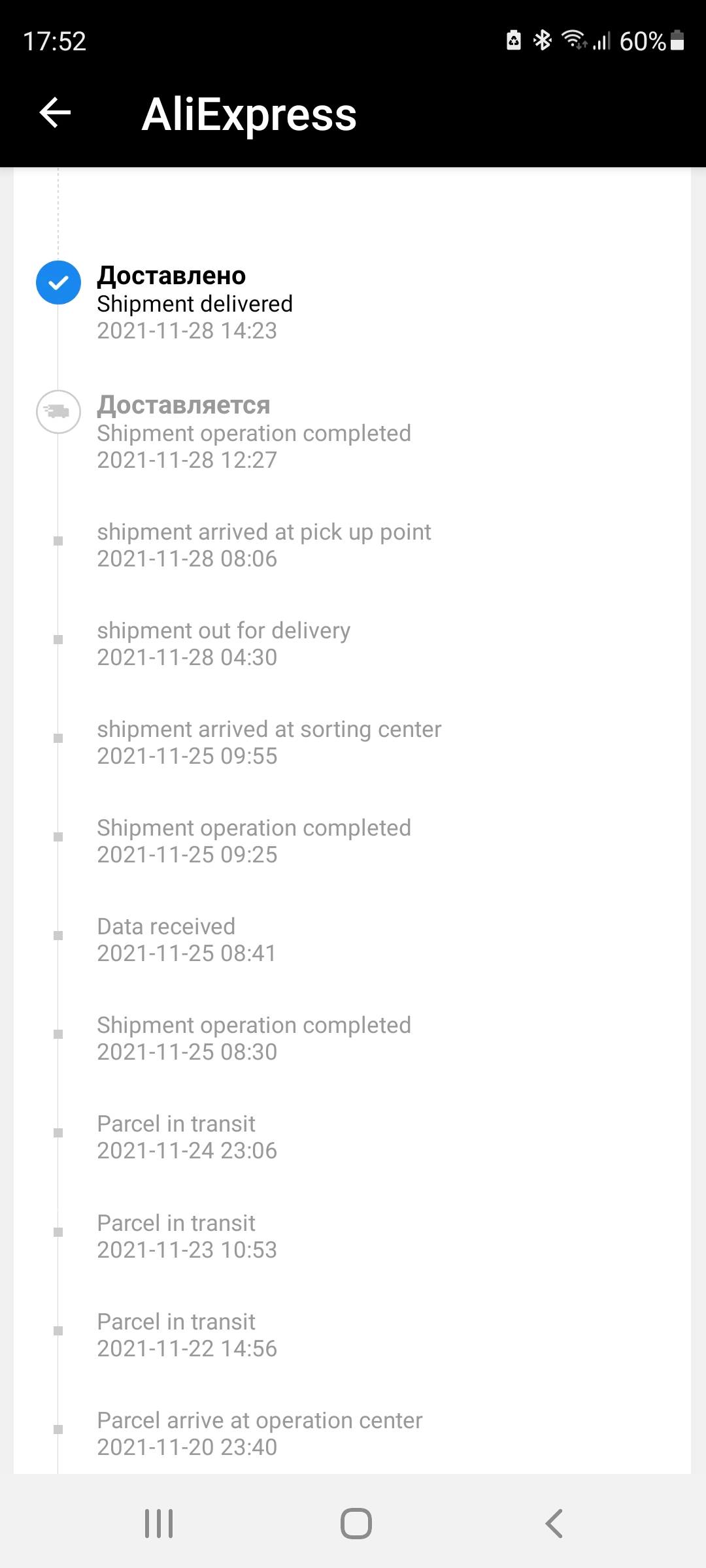 Правда этапы трекинга какие-то странные, склады, комплектация.