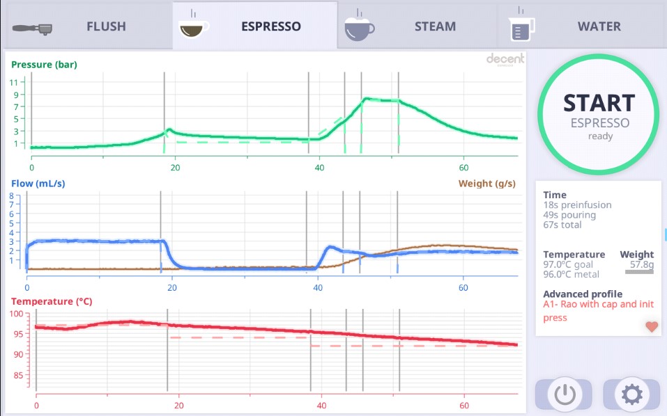 Каждый сорт кофе готовится по своему профилю давления,